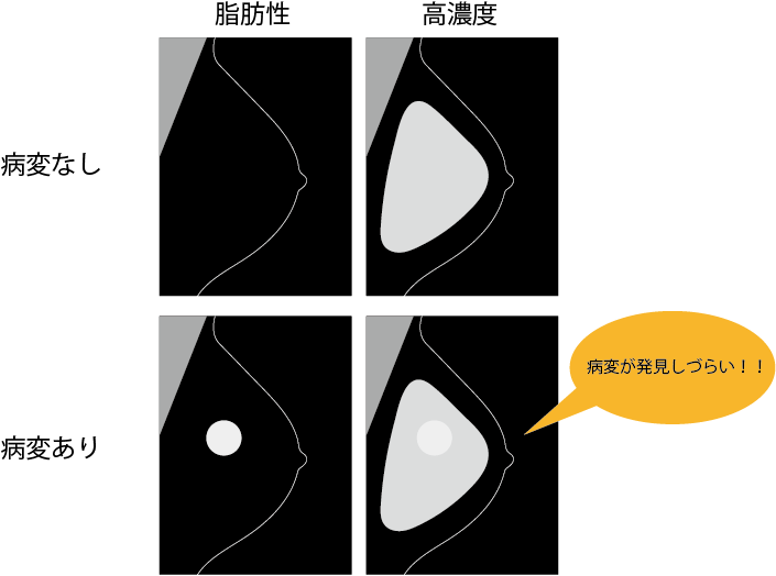 - 日本人は「高濃度乳房」が多いとされています。